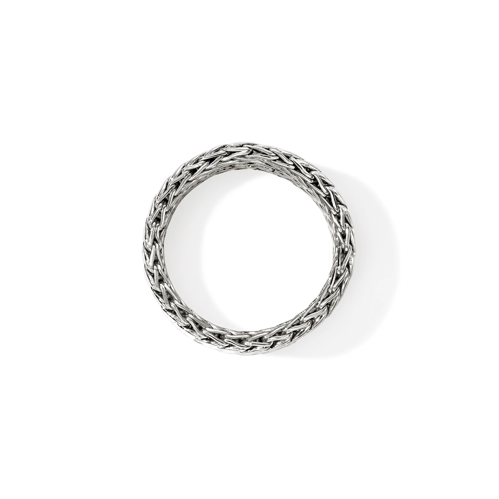 A seamless flat-weave ring with a low profile. Artisan handcrafted in reclaimed sterling silver.